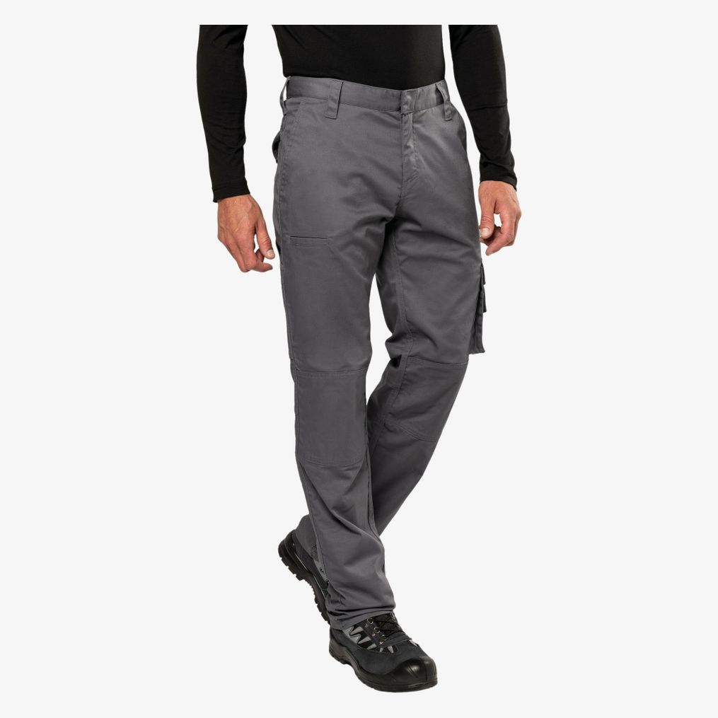 Le pantalon travail multipoches associe 65% polyester et 35% coton. Il intègre une fermeture zippée avec bouton et une couture renforcée à l'entrejambe. Plusieurs poches sont réparties pour le rangement et les genoux sont préformés pour une meilleure adaptation.