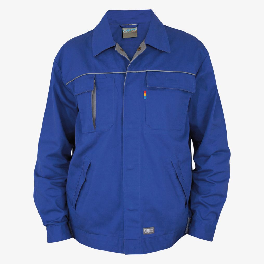 La Contrast Work Jacket est une parka blouson conçue pour un usage professionnel. Elle intègre des bandes réfléchissantes sur le devant et le dos ainsi qu'un pli contrasté pour plus de flexibilité. Les boutons-pression sont dissimulés, et le dos est sans coutures afin de faciliter l'impression. Les poches comprennent rabats avec fermetures auto-agrippantes, une poche intérieure et des poches latérales dissimulées. Le col présente des rabats à l'arrière avec couleurs contrastées.