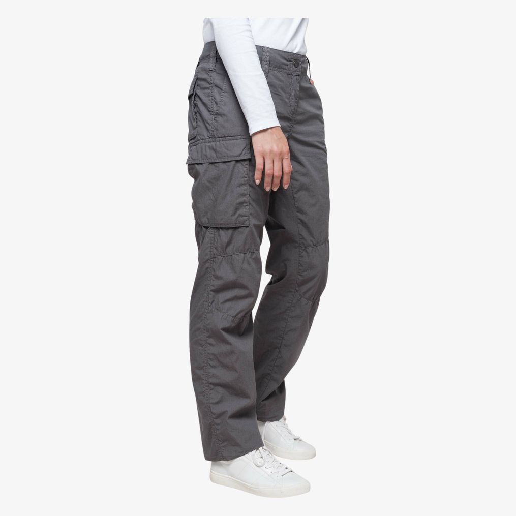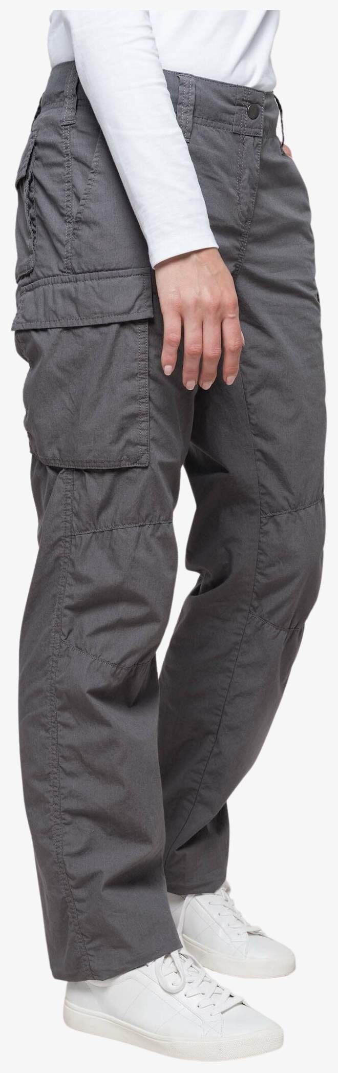 Le pantalon léger multipoches femme est confectionné en coton popeline lavé pour un toucher souple et confortable. Il inclut une fermeture zippée avec bouton pression ainsi qu'un intérieur de ceinture contrasté muni d'un cordon de serrage pour ajustement.