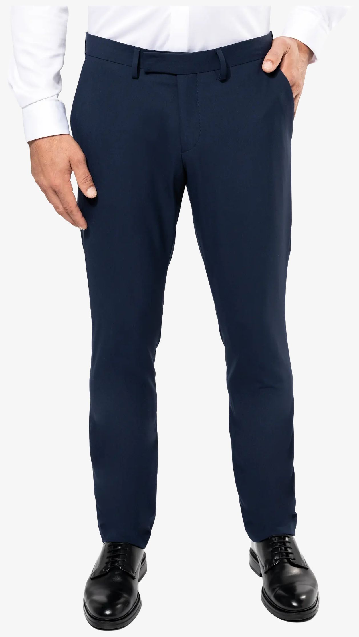 Le pantalon costume homme pk740 comprend deux poches italiennes devant et deux poches dos passepoilées avec boutons ton sur ton et piqûre nervure. Il possède des plis permanents devant et dos, une braguette avec zip nylon et deux crochets métal. La ceinture est équipée de passants. Une doublure polyester couvre le haut de la jambe devant pour le confort.
