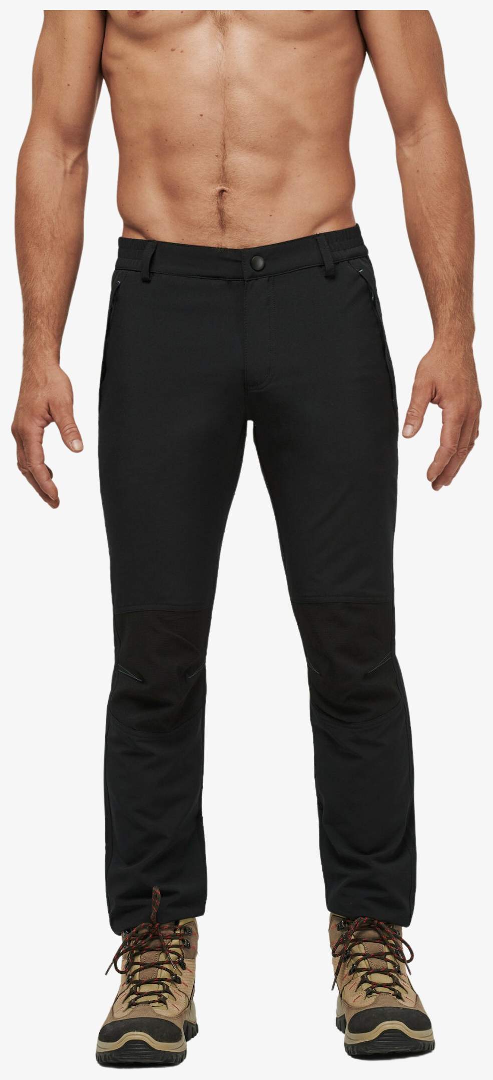 Le pantalon léger homme combine un tissu bi-extensible avec un traitement déperlant et anti-statique, apportant confort et praticité dans un usage quotidien. Il comprend une fermeture braguette zippée avec bouton crochet, deux poches avant zippées, une poche arrière passepoilée zippée et une ceinture élastiquée avec passants.