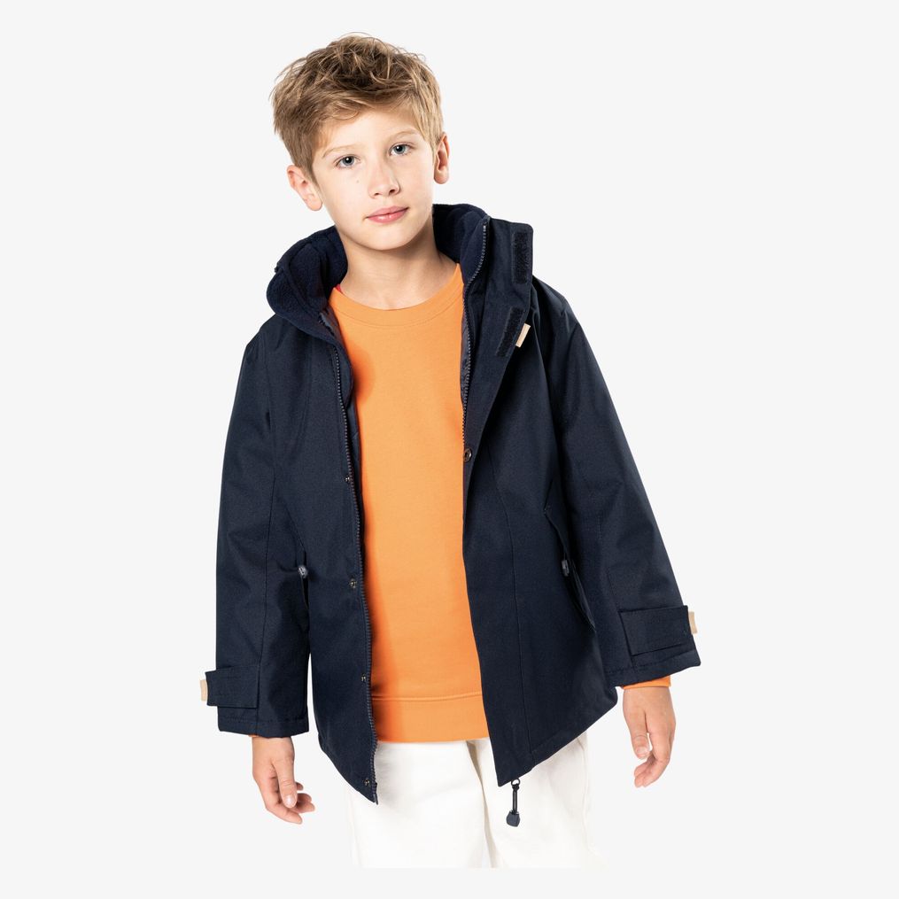 La Parka enfant k696 convient aux usages quotidiens par temps frais, avec extérieur en polyester Oxford, doublure polyester matelassée et capuche doublée polaire. Fermeture zippée avec patte à pressions et bande auto-agrippante, poches zippées et poches intérieures dont une pour téléphone.