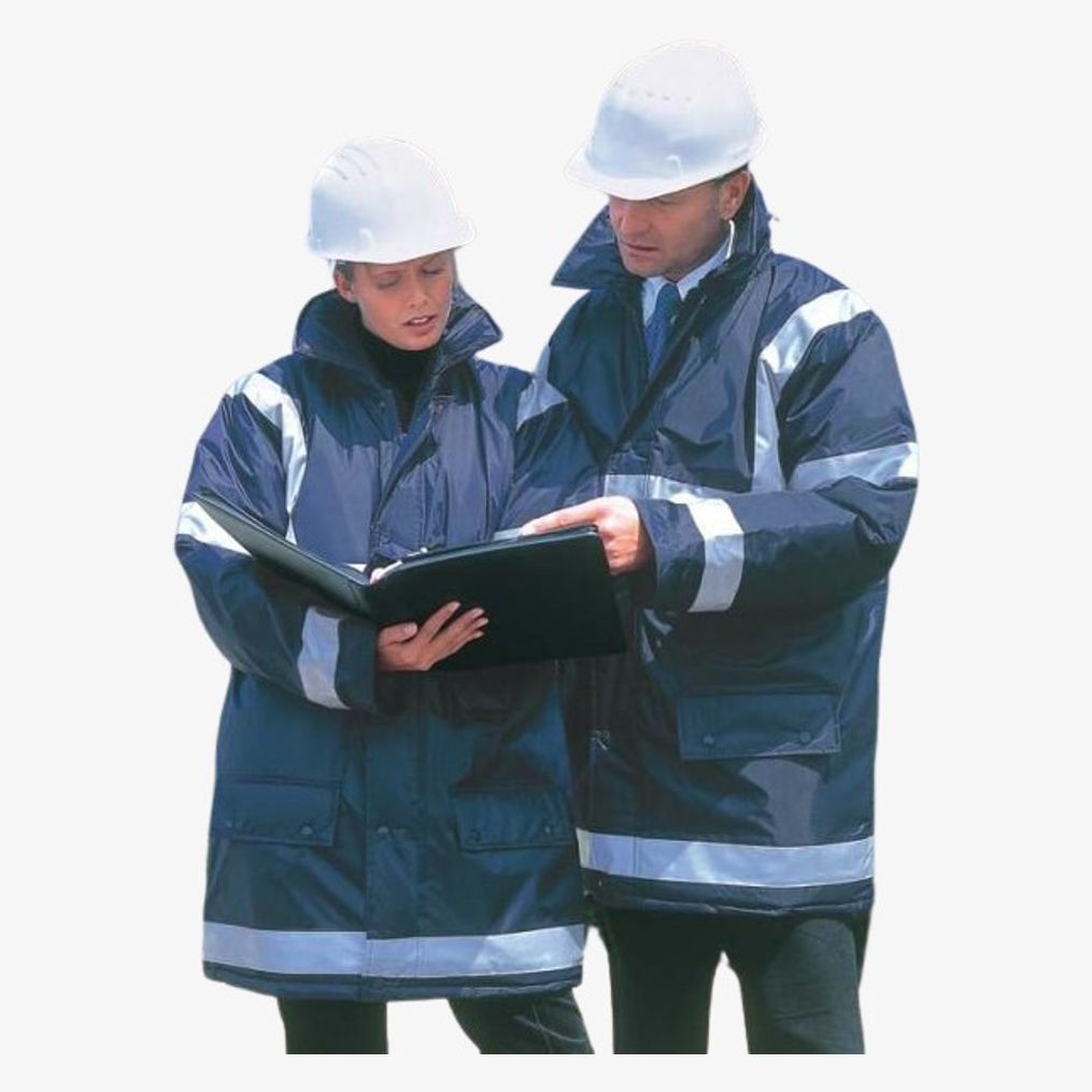 Le PARKA ROYAL NAVY parka convient pour un usage extérieur par temps humide, avec bandes réfléchissantes, capuche détachable et ouverture dos zippée. Composition : 100 % Oxford nylon ; doublure 100 % nylon, matelassée polyester.\n\n- Composition : 100 % Oxford nylon\n- Doublure : nylon, matelassée polyester\n- Bandes réfléchissantes\n- 3 poches