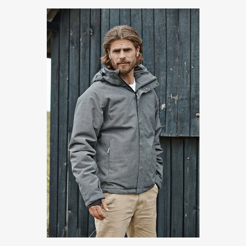 ·Ext: 100% polyester (tissu jacquard) ·doublure: 100% polyester ·membrane TJtech ·résiste au vent et waterproof (5.000 mm) ·capuche amovible ·fermeture à glissière YKK et rabat tempête extérieur ·poches à l`intérieur, poches sur le côté avec fermeture à glissière ·manchons dans les manches ·coutures soudées ·accès aisé pour la décoration grâce à une fermeture à glissière à l`intérieur