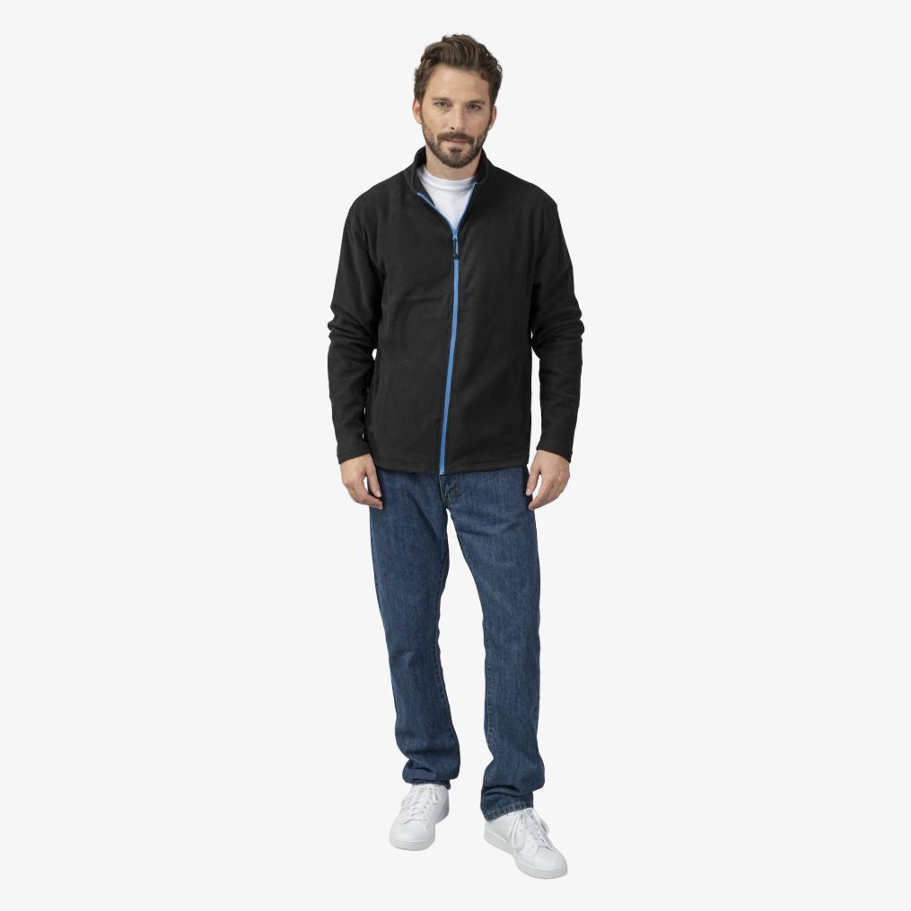 La micro polaire homme Artic Men convient aux usages quotidiens par temps frais, avec fermeture zippée et deux poches latérales. Traitement anti-peluche. Bande propreté twill.