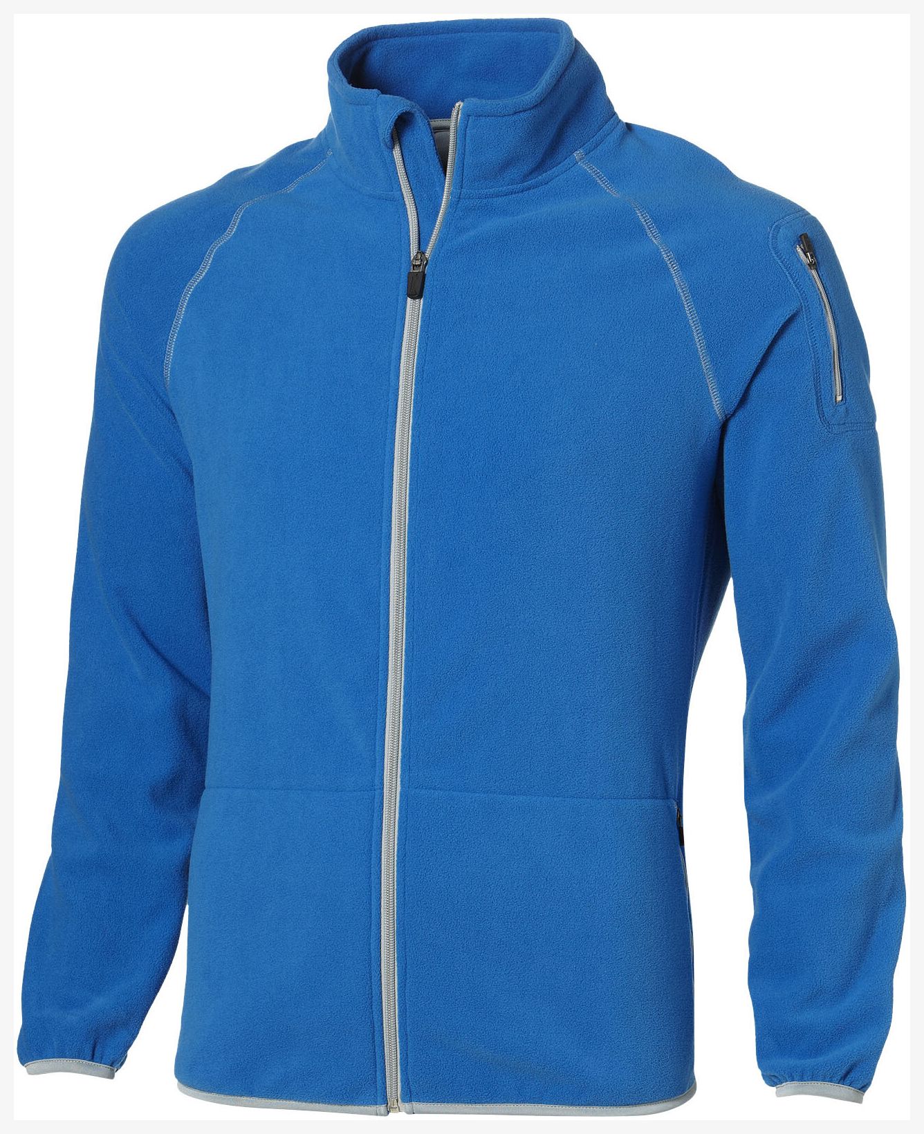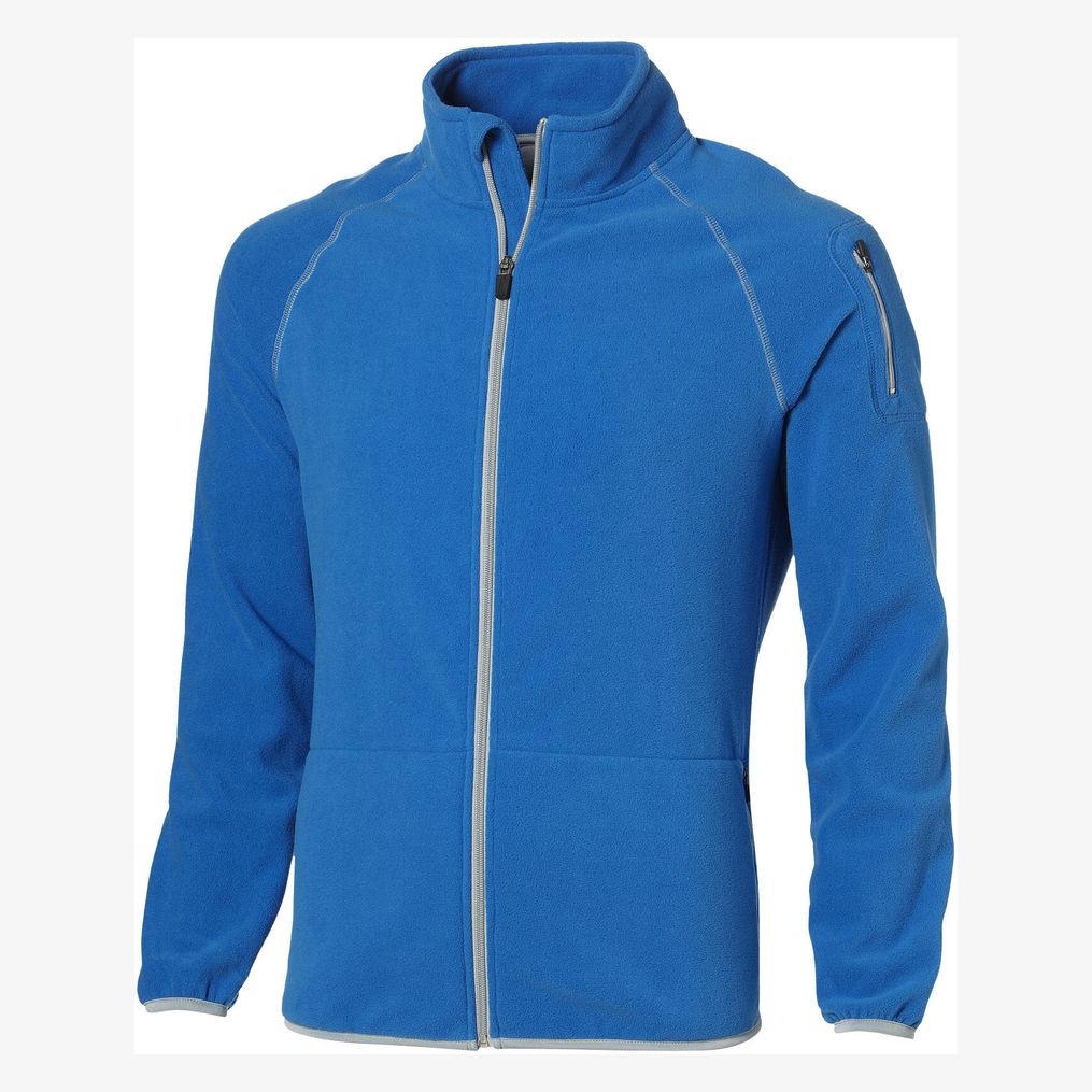 Veste micro-polaire full zip. Poches pour les mains avec zippers. Poche sur la manche avec zipper. Coutures plates. Patte intérieure. Protège-menton. Serrage élastique. Demi-lune couleur contrastée. Étiquette principale en transfert pour un meilleur confort. Micro polaire, 100% Polyester, 2 faces brossées, 1 face anti-boulochage. Grammage : 190g/m²