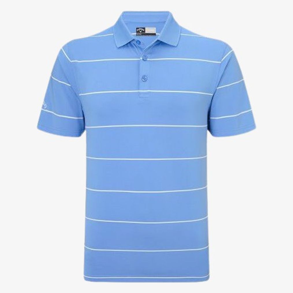 Le polo rayé en polyester combine une matière Opti-stretch avec une protection UV 40. Il comporte un tour brodé sur la manche droite.