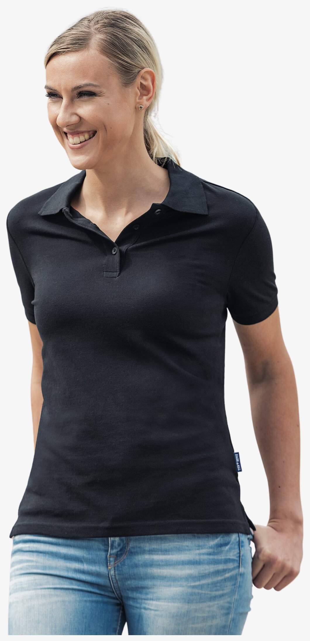 Le Women's Luxury Polo est conçu en maille piquée coton peigné filé à l’anneau avec une coupe étroite moderne. Il dispose d’un tour de cou avec fentes latérales renforcées par un ruban sergé et d’un col tricot côtelé 1x1 aux extrémités du col et des manches. La patte comporte 3 boutons avec un détail ton sur ton. Le modèle est sans étiquette.
