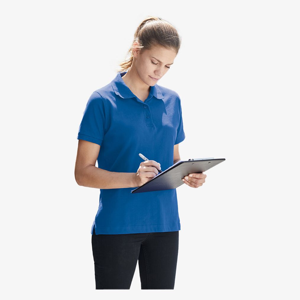 Le Workwear Polo Women est conçu en coton peigné ring-spun single-jersey prérétréci. La coupe légèrement cintrée facilite les mouvements tout en assurant un maintien confortable grâce à ses ouvertures latérales et sa bande propreté.