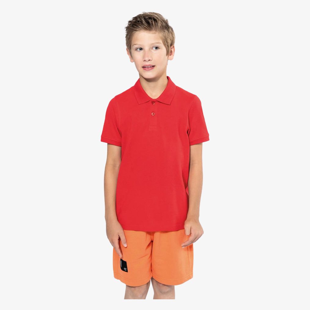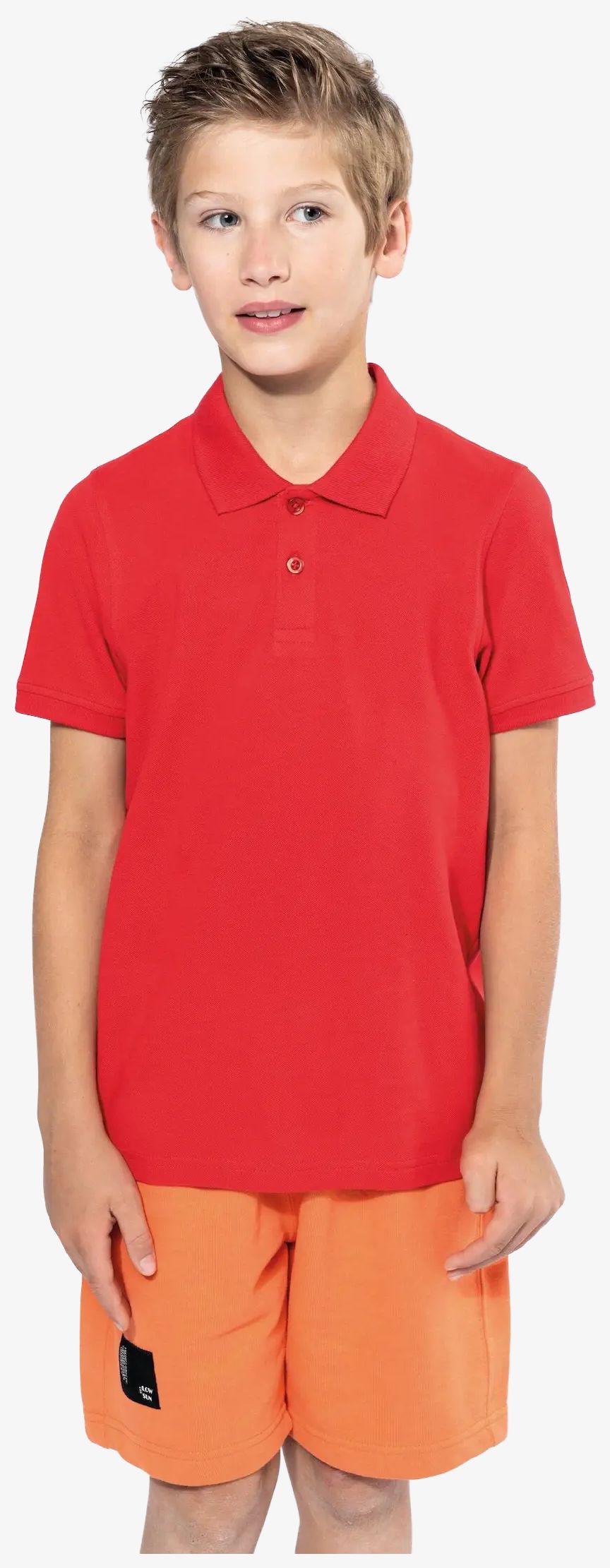 Le polo manches courtes enfant en coton peigné préretréci RingSpun dispose d'une maille piquée et d'une coupe ajustée. Il comprend une patte de boutonnage 2 boutons ton sur ton, une bande propreté ton sur ton, un col bas ainsi que des manches bord-côte 1x1. La finition du bas est un ourlet double surpiqûres. Le bord-côte des manches contient de l'élasthanne pour limiter la déformation. Aucune étiquette marque au col, uniquement une puce taille.