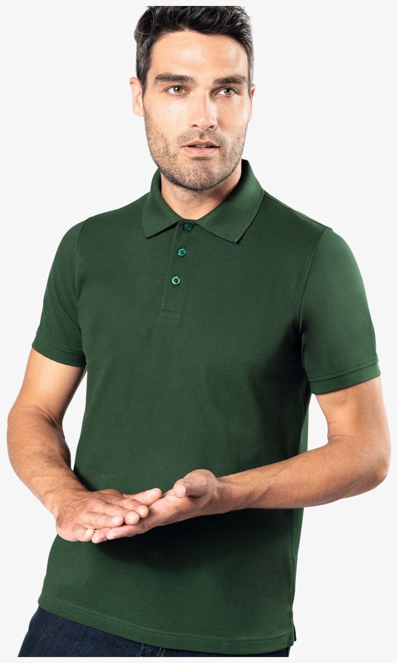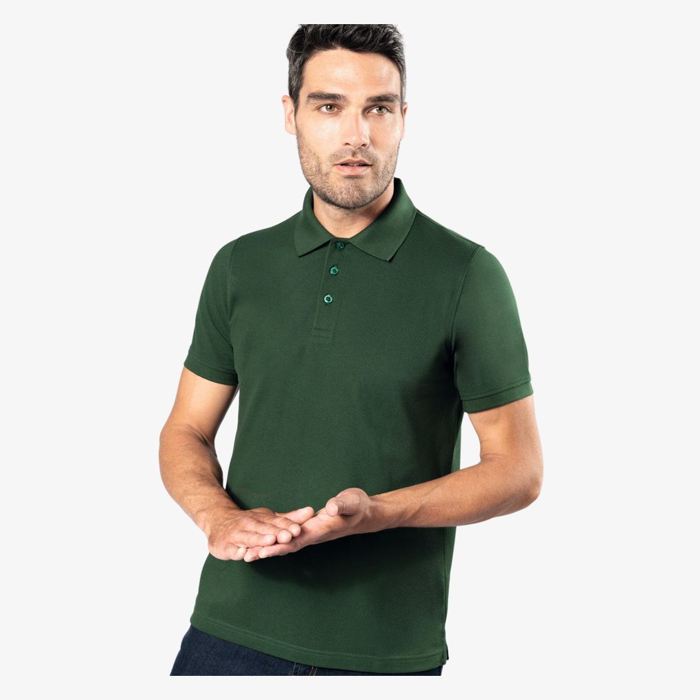 65% polyester / 35% coton peigné. Maille piquée. Lavable à 60°C. Traitement anti-bacterien et anti-boulochage. Patte 3 boutons ton sur ton. Col en bord-côte avec bande de propreté contrastée. Finition bord-côte bas de manches. Fentes latérales avec bande contrastée pour plus de confort. Finition double aiguille bas de vêtement. Convient pour un usage professionnel. Grammage : 200g/m²