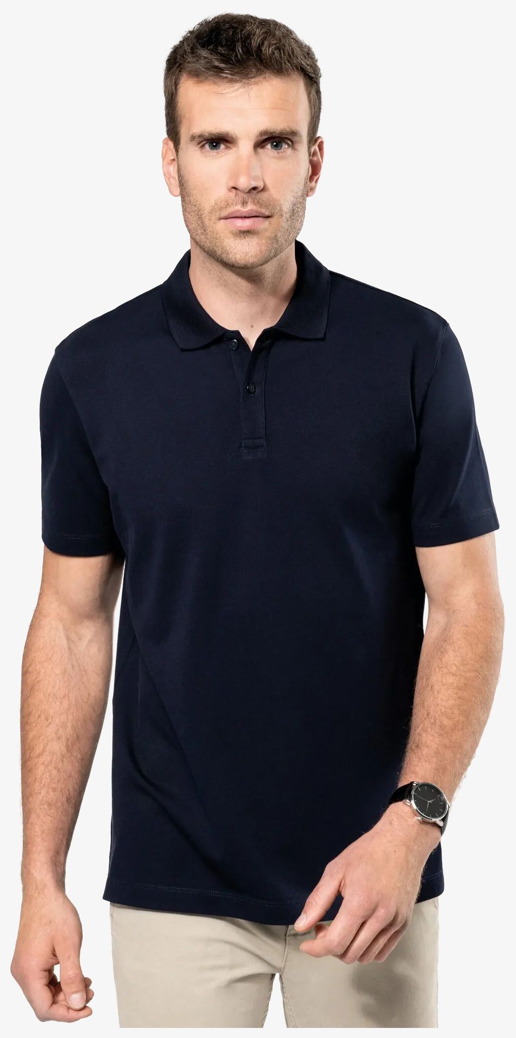 Le polo manches courtes homme est conçu en maille piquée avec du coton Supima®. Le tissu présente un toucher doux et soyeux. Le col est en bord-côte Rib 1x1 avec une bande propreté ton sur ton à l'intérieur. La patte comporte deux boutons ton sur ton. La couture d'épaule est renforcée par une bande siliconée. Les manches et le bas du vêtement disposent d'un ourlet double surpiqûre. Une puce taille remplace l'étiquette marque au col.