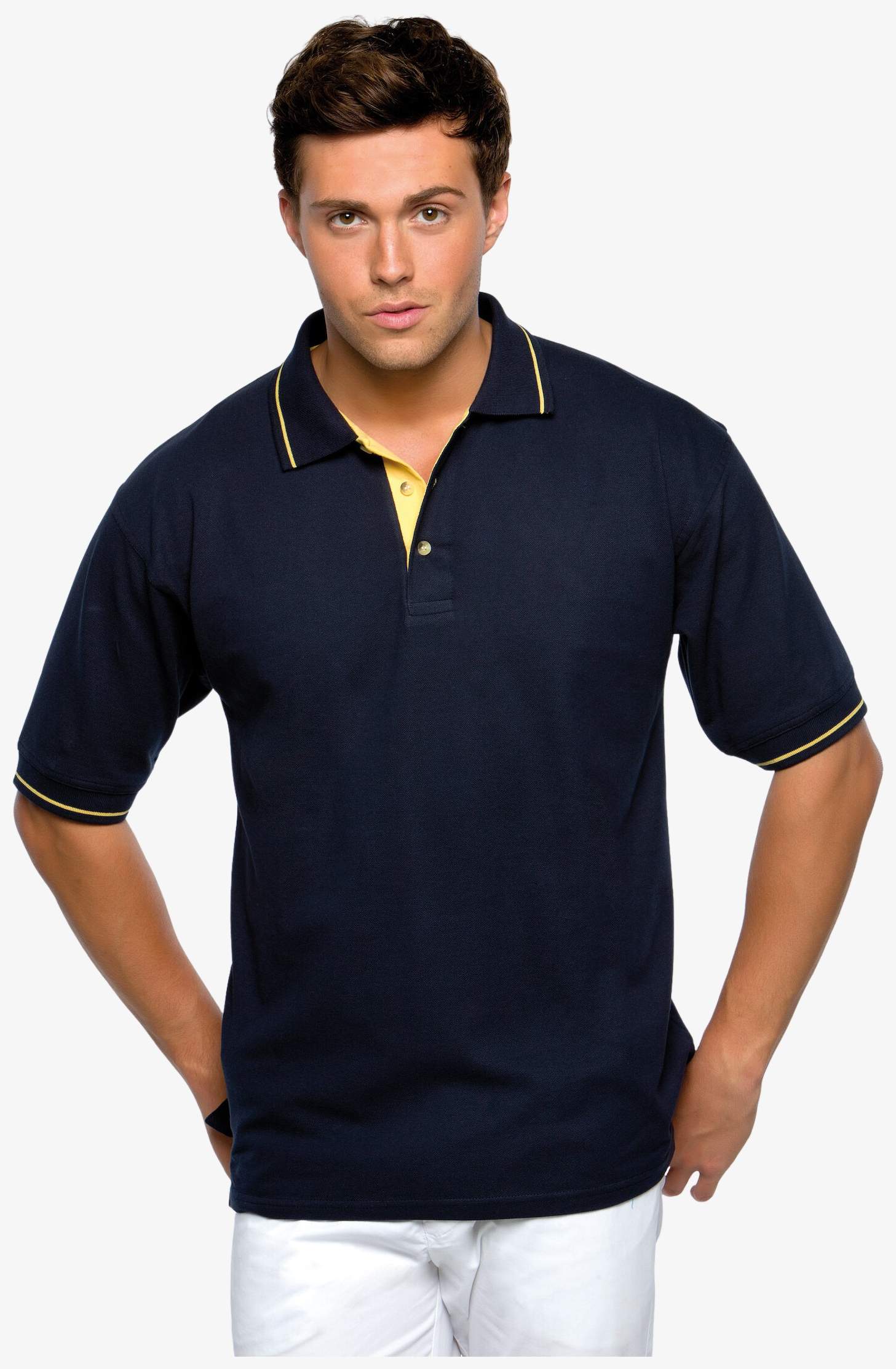 KK606 - Contrast Tipped Piqué - navy/sun_yellow