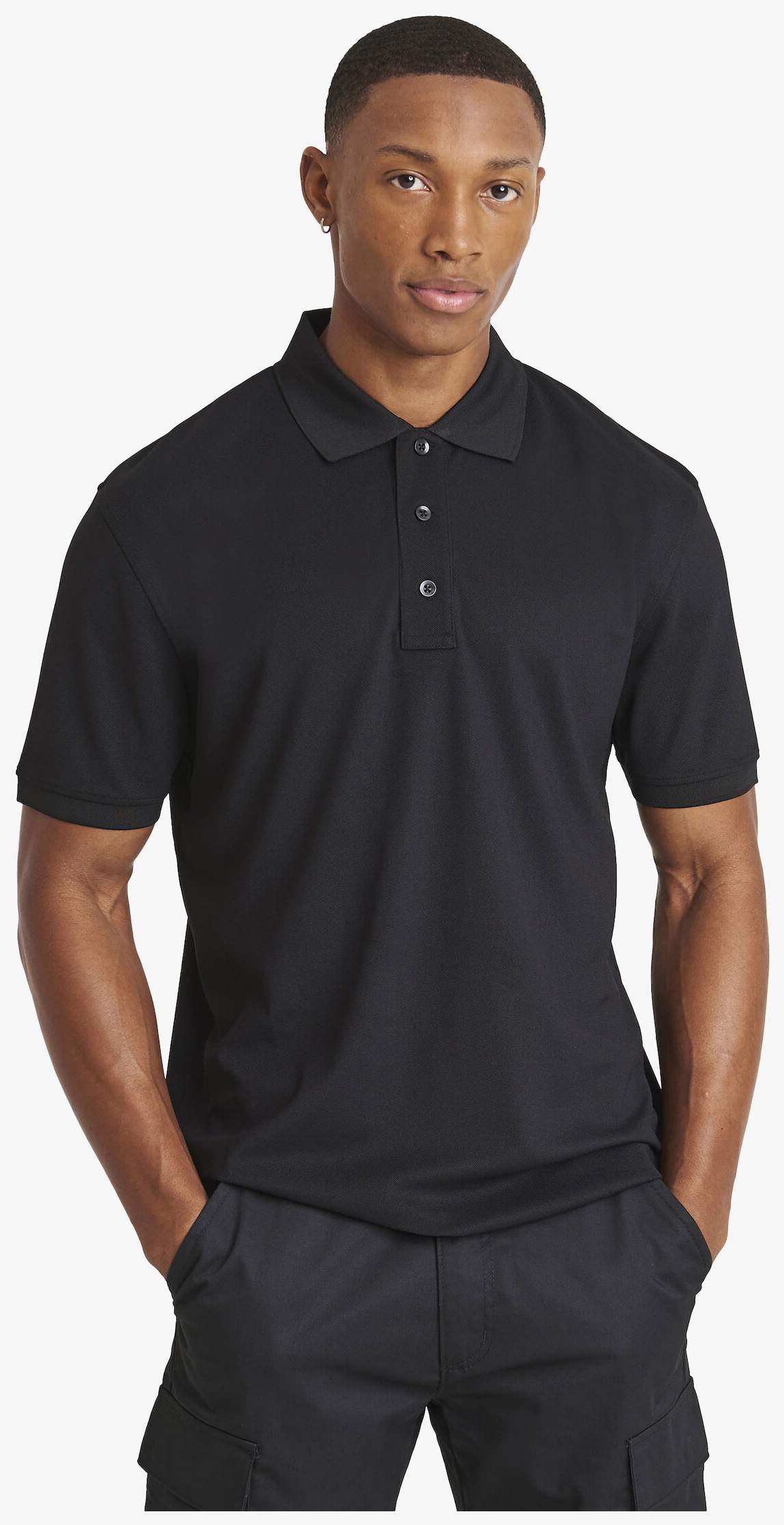 Le polo à manches courtes en polyester recyclé présente une coupe standard avec une finition permanente d'évacuation de l'humidité et un fini antibactérien. Le col et les poignets sont côtelés. La patte de boutonnage comprend 3 boutons plus 1 bouton de rechange.