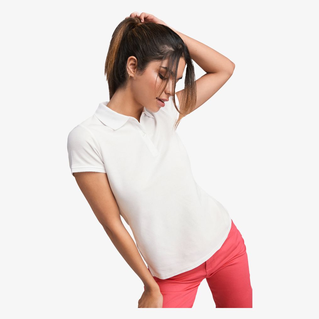 Le polo ajusté à manches courtes pour femme en coton biologique comporte un col et des finitions des manches en côte 1x1. La patte de boutonnage comprend 2 boutons et les coutures sont renforcées et couvertes au col. Des fentes latérales sont présentes sur l'ourlet et l'étiquette est enlevable.