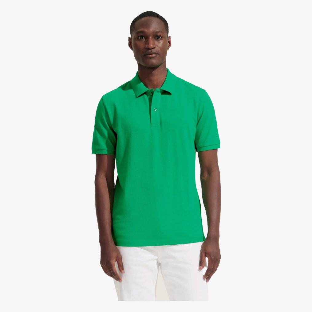 Le polo unisexe présente un col côte avec bande de propreté et une patte renforcée à deux boutons tons sur tons. Les manches courtes sont dotées de bords côte et les fentes côtés sont renforcées pour la durabilité. La coupe est cousue et confortable. Un bouton de rechange est fixé sur la couture intérieure côté.