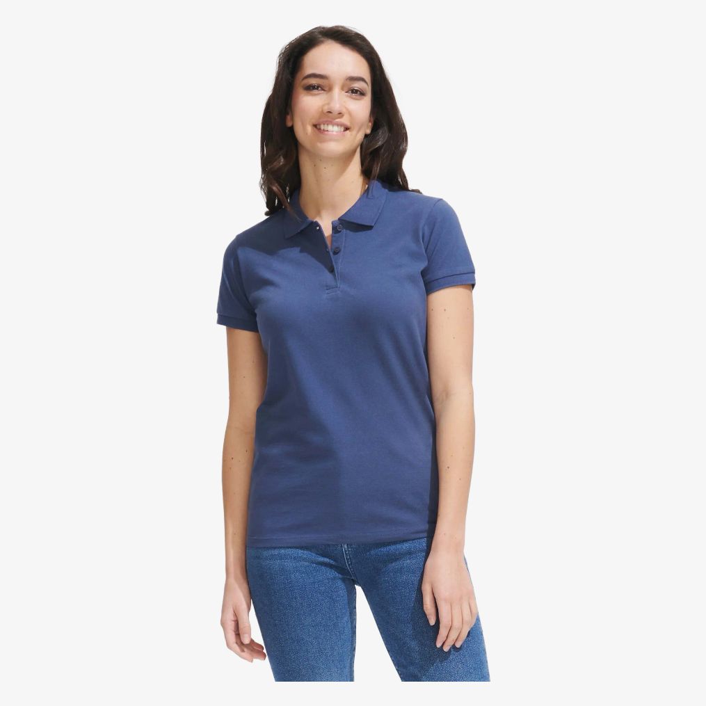 Le Perfect Women polo 11347 en maille piquée 100% coton piqué Ringspun, avec col bas et bas de manches en côte 1x1, patte col 3 boutons nacrés ton sur ton et coupe cintrée. Bande de propreté au col, bouton de rechange et finitions double surpiqûres.