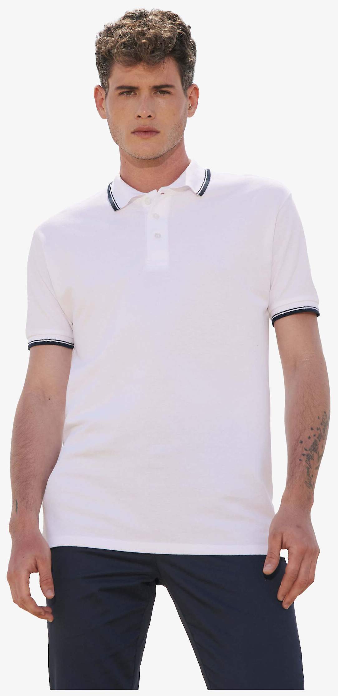 Le Practice polo 11365 en maille piquée, en coton peigné, avec col bas, patte 3 boutons et fentes latérales. Convient pour un port régulier, avec une coupe coupé-cousu et un bas droit.