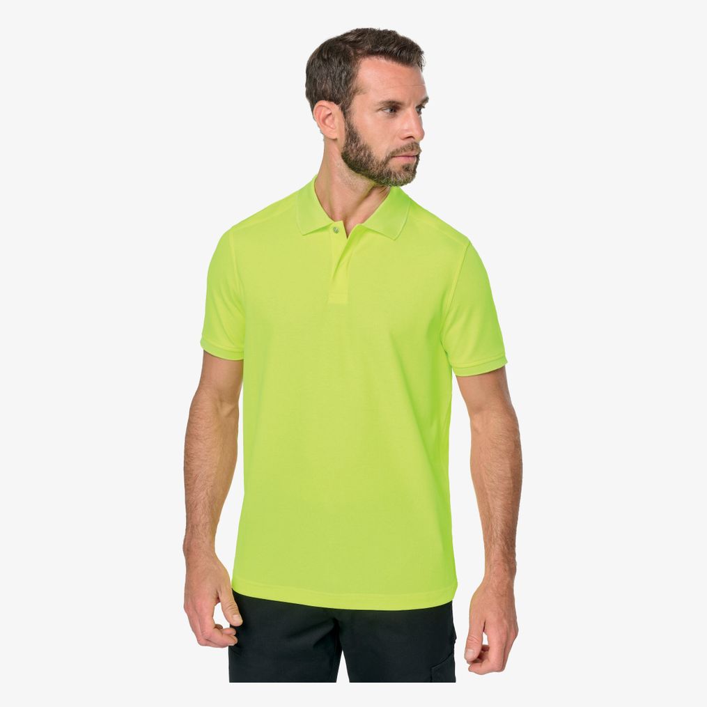 Le Polo Unisexe écoresponsable est un polo unisexe en maille piquée interlock, avec coupe confort, col bas et manches en bord-côte. Fermeture par 2 boutons pression cachés sous patte, bande de propreté au col et renforts intérieurs aux épaules.