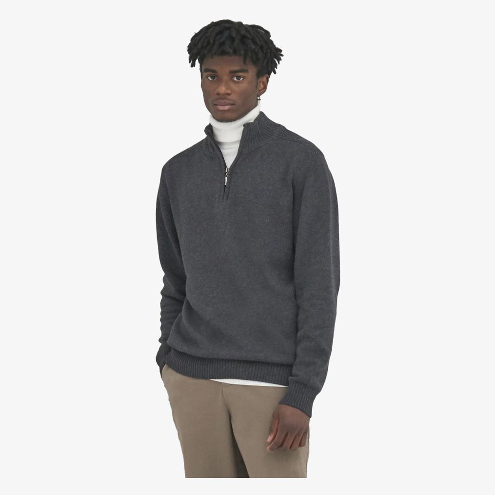 Le pull à zip quart longueur Wahkan en coton régénéré offre une coupe mode avec des manches longues et un col montant. Ce modèle présente des épaules, poignets et ourlet à coutures côtelées contrastées qui ajoutent une touche de modernité.