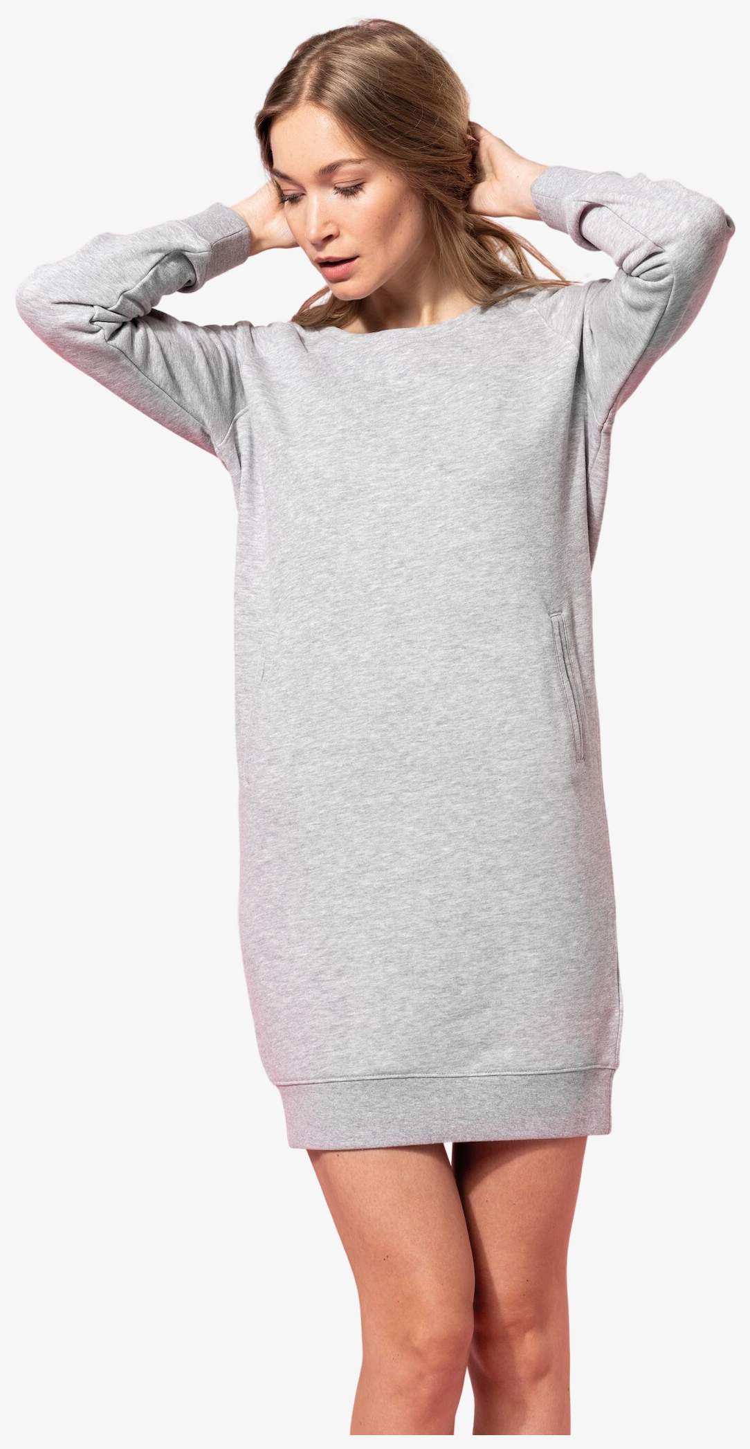 La robe Lounge bio molleton combine coton biologique et polyester avec une variante en viscose pour les couleurs chinées. Elle dispose d'une encolure ronde et de manches raglan. Deux poches passepoilées sont placées devant. La finition inclut un bord-côte au bas des manches et du vêtement.