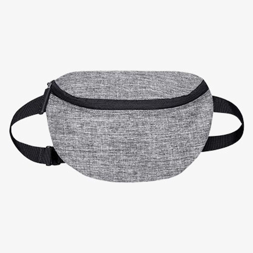 Le Belt Bag Chicago est un sac banane en polyester 600D gris chiné conçu pour un transport léger. Il comprend un compartiment principal et une petite pochette arrière, tous deux avec fermeture zippée. La bandoulière est ajustable avec fermeture à clic. Le volume est d'environ 2 litres.