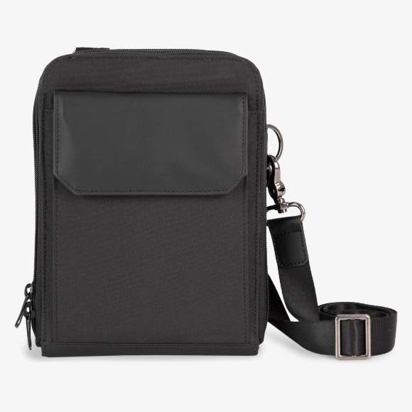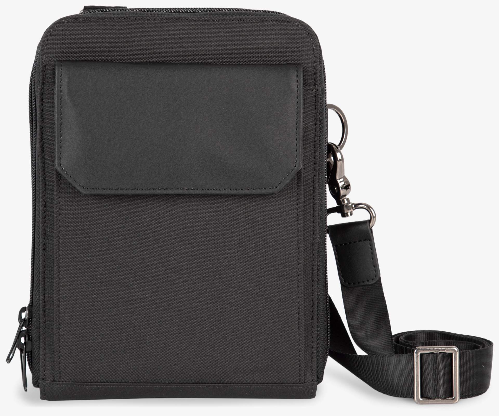 Le sac à bandoulière Kialma comprend deux compartiments zippés et une poche frontale avec bouton magnétique. La ceinture d'épaule est entièrement réglable. La capacité est de 2 litres.