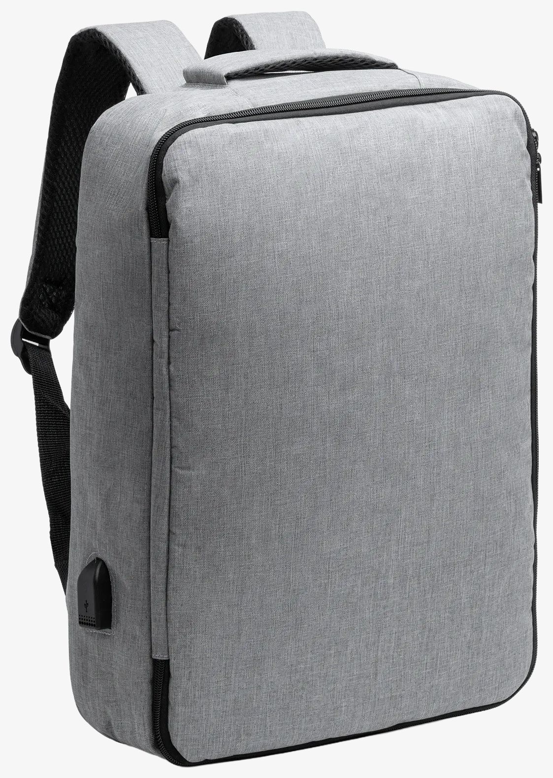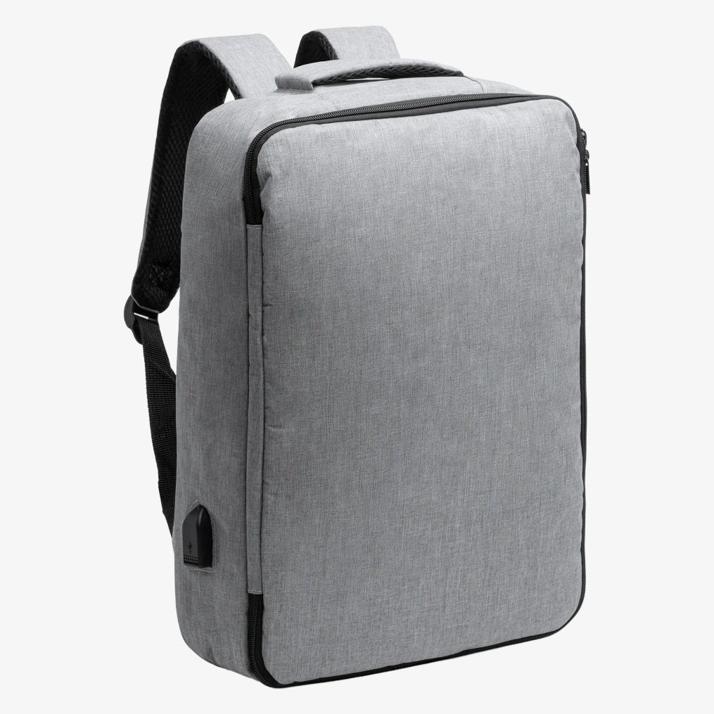 Le sac à dos RPET 300 D présente une poche principale rembourrée adaptée aux ordinateurs portables ou tablettes jusqu'à 33 cm et un port USB pour charger les appareils en déplacement. Les poignées et le dos rembourrés apportent un confort prolongé. La sangle valise permet la fixation sur une valise à roulettes.