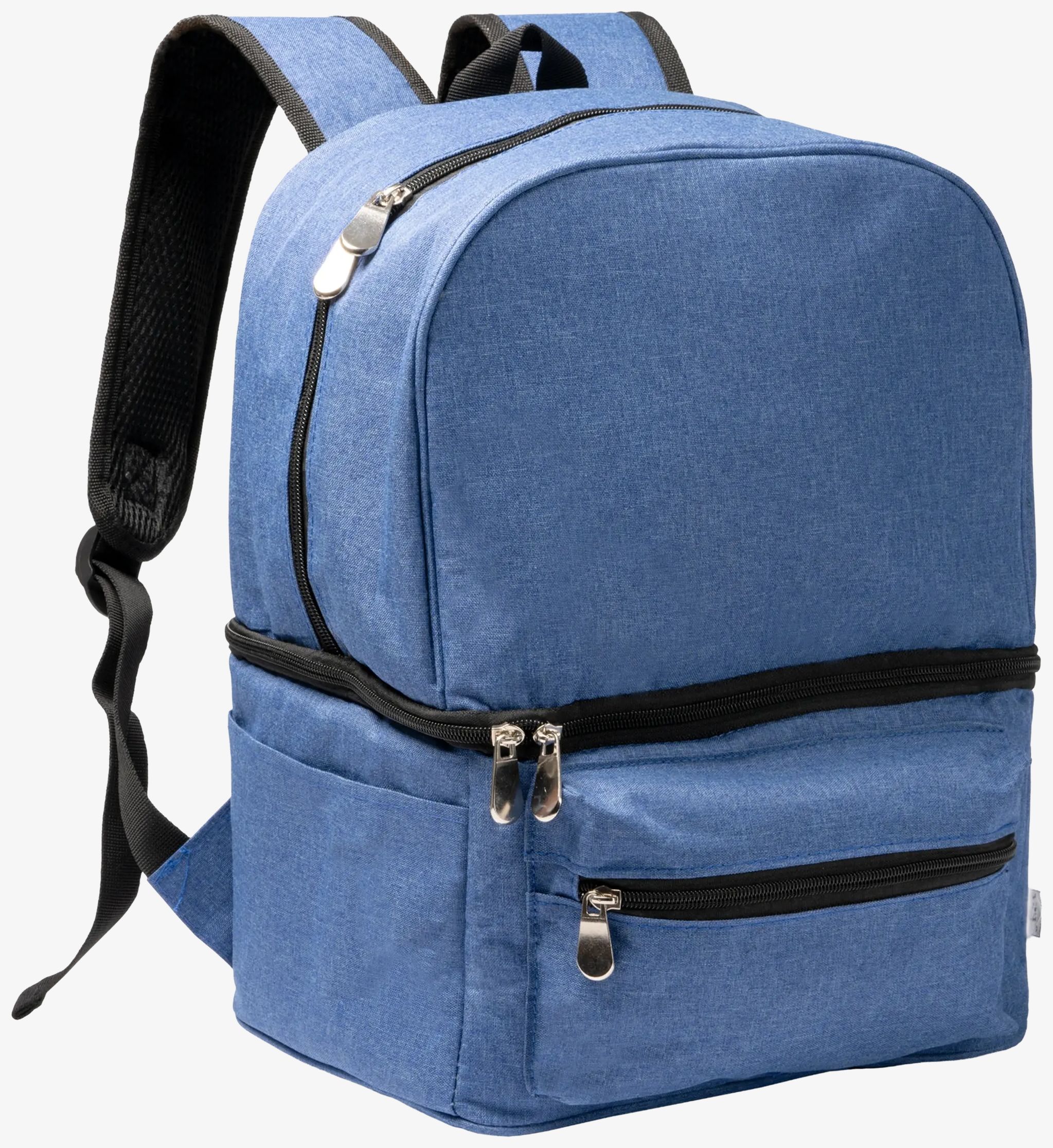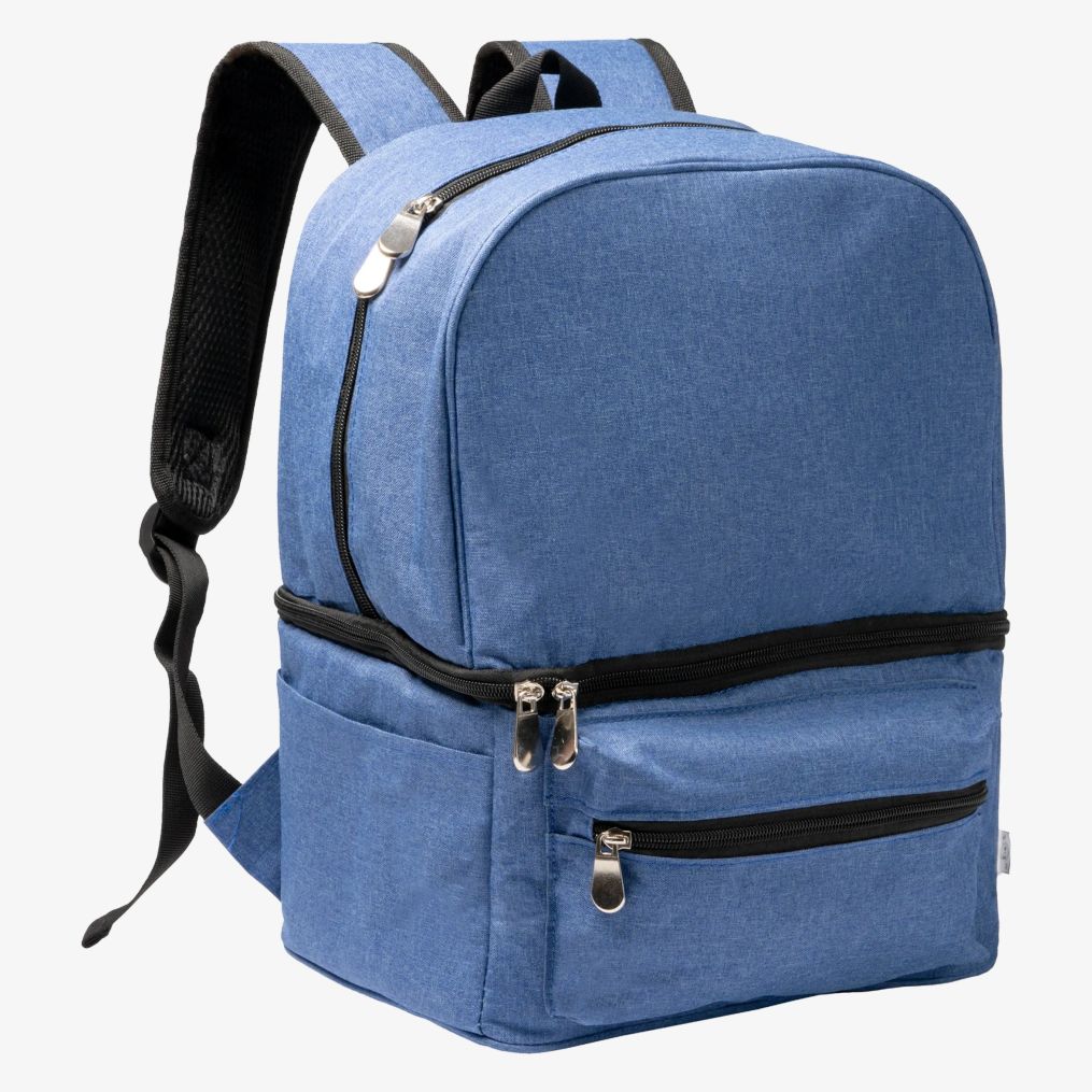 Le sac isotherme RPET 300 D comprend un double compartiment avec un intérieur isotherme dans la partie inférieure. Il dispose d'une poche avant avec fermeture à glissière et de deux poches latérales. Le compartiment supérieur contient trois poches intérieures. Les sangles sont rembourrées pour un port confortable.