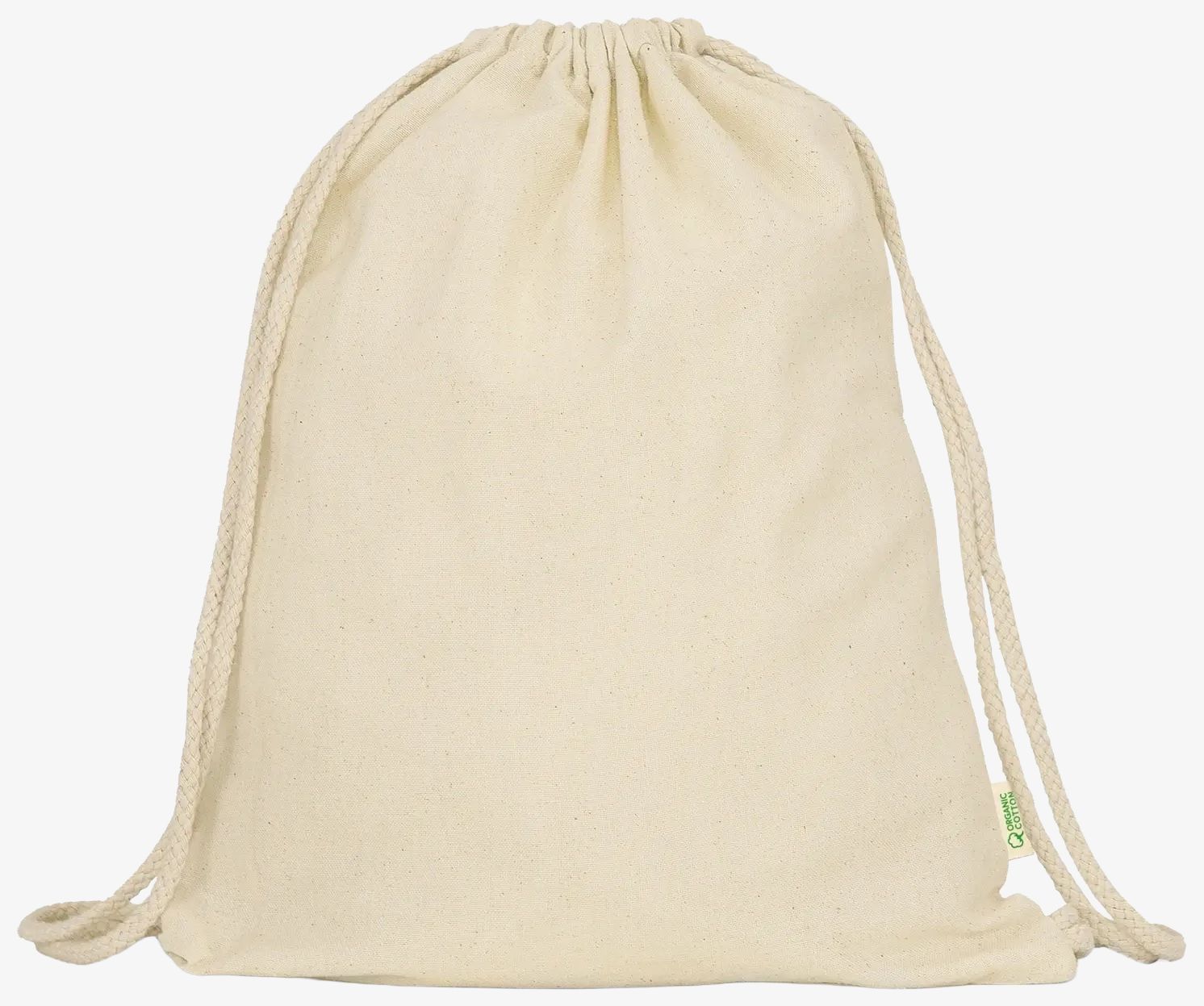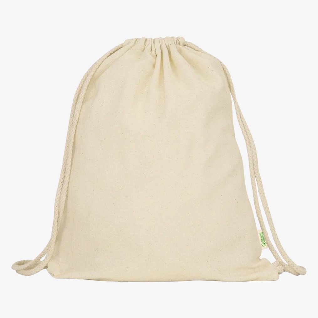 Le sac gym coton MUNA est conçu en coton biologique avec un système de fermeture à cordon. Il mesure 42 x 38 cm, offrant un volume adapté pour transporter des effets personnels légers.
