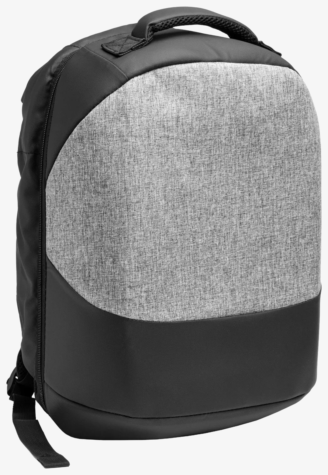 Le sac à dos antivol en nylon comprend un compartiment avec sortie USB pour connecter un Power Bank (non inclus) et un câble micro USB. Il offre une poche polyvalente sur la sangle droite et une poche principale avec deux compartiments rembourrés adaptés pour ordinateur portable et tablette.