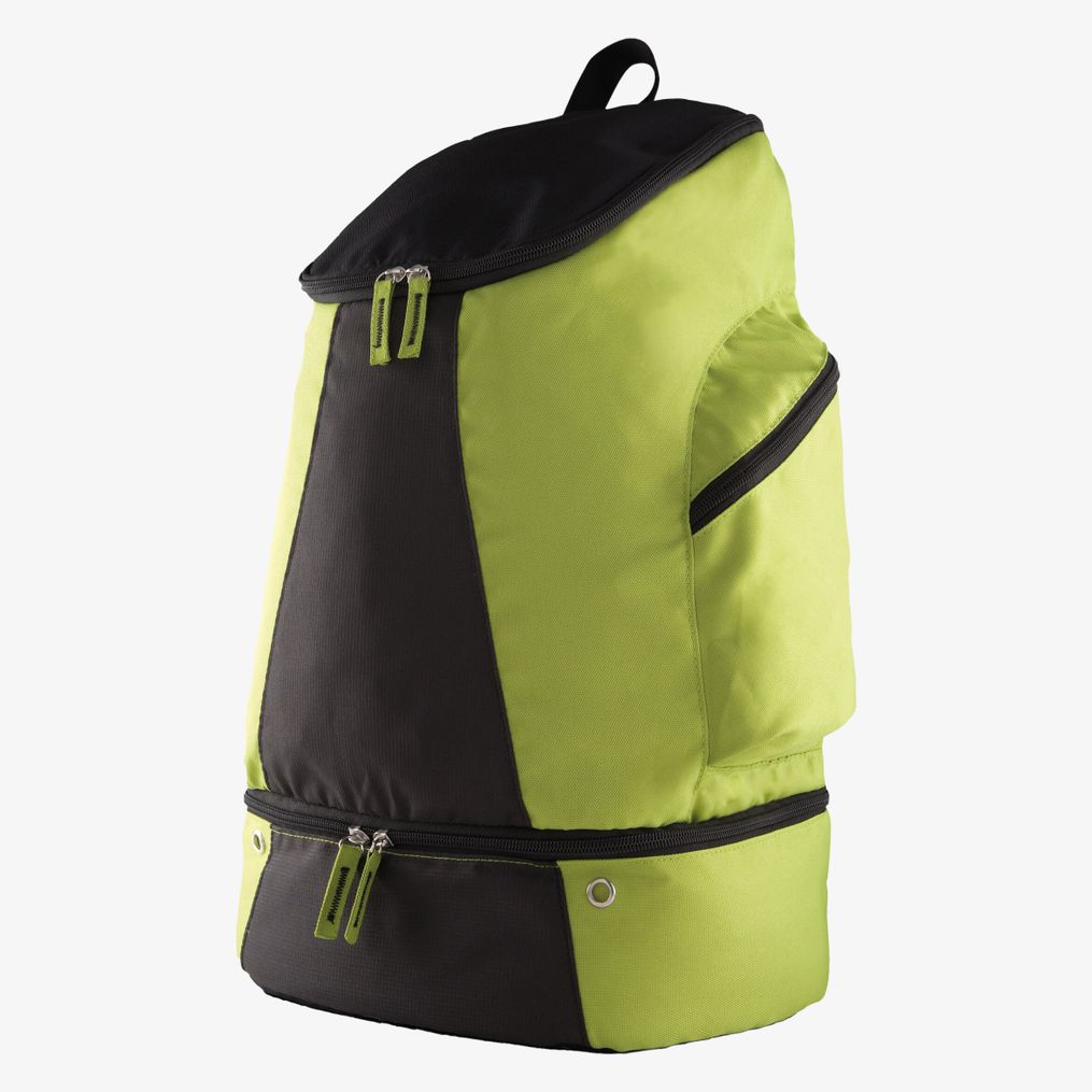 Le SAC À DOS sert au transport des affaires de sport, avec un compartiment central et un espace séparé pour les chaussures. La structure comprend des poches latérales, un dos matelassé respirant et des bretelles ajustables pour le portage.