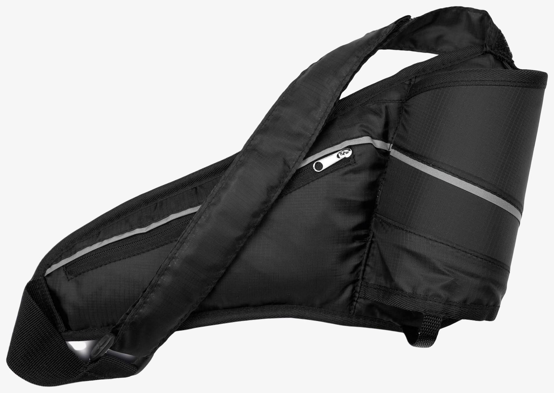 Sac de ceinture porte gourde idéale pour toute activité sportive ou de plein air, en ripstop et enduction PU norme reach. Poche au dos, gourde non incluse maintenue avec élastiques, bande réfléchissante. Accessoires conformes à la norme Reach en vigueur et zips SBS. Dimensions : 36 cm x 16.5 cm.