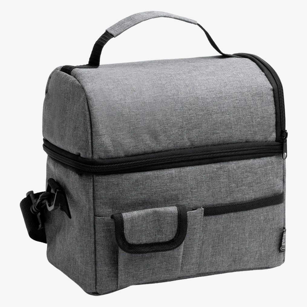 Le sac isotherme conçu en RPET 600 D permet de conserver aliments et boissons à température. Il dispose de compartiments isolés pour une meilleure conservation. La bandoulière rembourrée est réglable et équipée d'un mousqueton pour faciliter le transport. Les poches extérieures offrent un espace supplémentaire pour ranger des objets personnels.