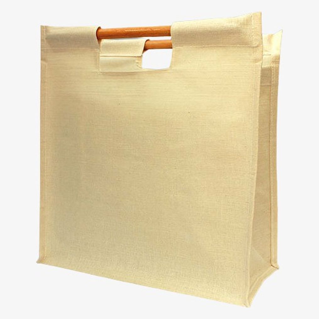 Le sac shopping en toile combine jute et coton pour une structure légère et résistante. L'intérieur est plastifié pour une meilleure protection. Les poignées sont en bambou, assurant une prise en main confortable.