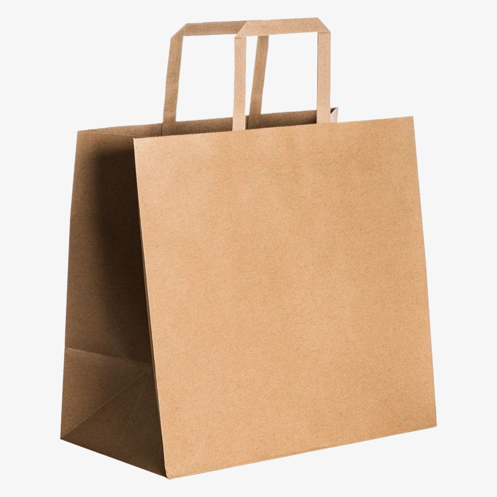 Le sac shopping papier OLMO présente une finition naturelle avec des poignées plates courtes renforcées. Ce sac convient aux usages variés comme le transport d'objets légers.