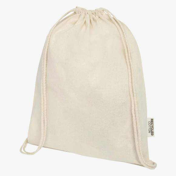 Le sac avec cordon Oregon est confectionné en coton recyclé. Il est léger et durable, offrant un espace suffisant pour un usage polyvalent. Le cordon de serrage facilite l'ouverture et la fermeture du sac.