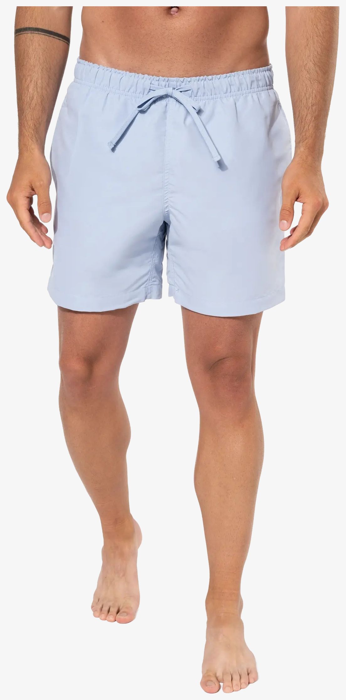 Le short bain écoresponsable homme est conçu en tissu sergé avec une coupe ajustée. Il comprend deux poches côtés ouvertes avec sac poche en maille filet et une ceinture élastiquée munie d'un cordon de serrage plat. Le slip intérieur en maille filet est fini par un biais élastiqué pour un confort accru. Une poche arrière passepoilée est équipée d'une fermeture à bande auto-agrippante. La double aiguille au point d'arrêt est présente à l'entrejambe sur les côtés.