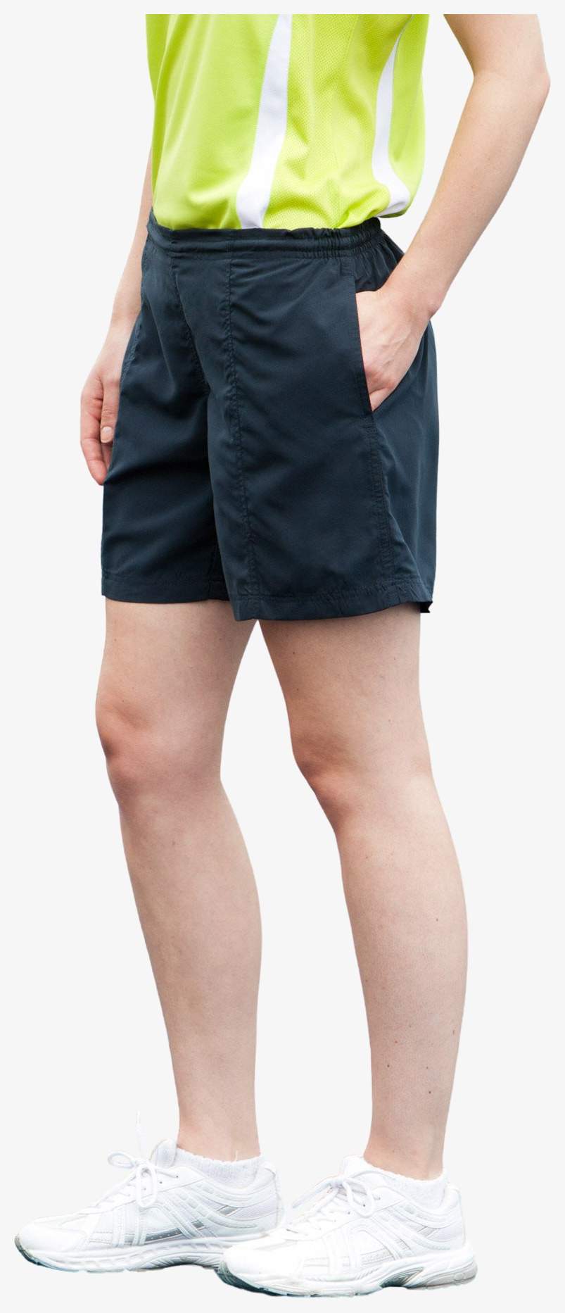 Le short en polyester microfibre est conçu pour une utilisation polyvalente. Il comporte des poches latérales ainsi que des poches arrières équipées d'une fermeture par bande auto-agrippante. La finition double couture renforce la tenue du tissu.