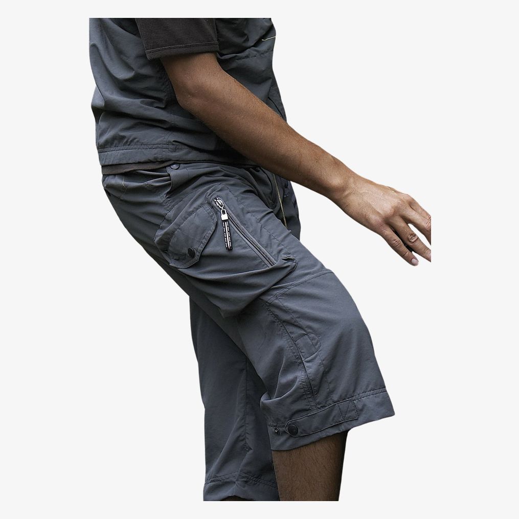 Anti UV 40. Multipoches: poches à soufflet, poches zippées, poches doublées de filet.