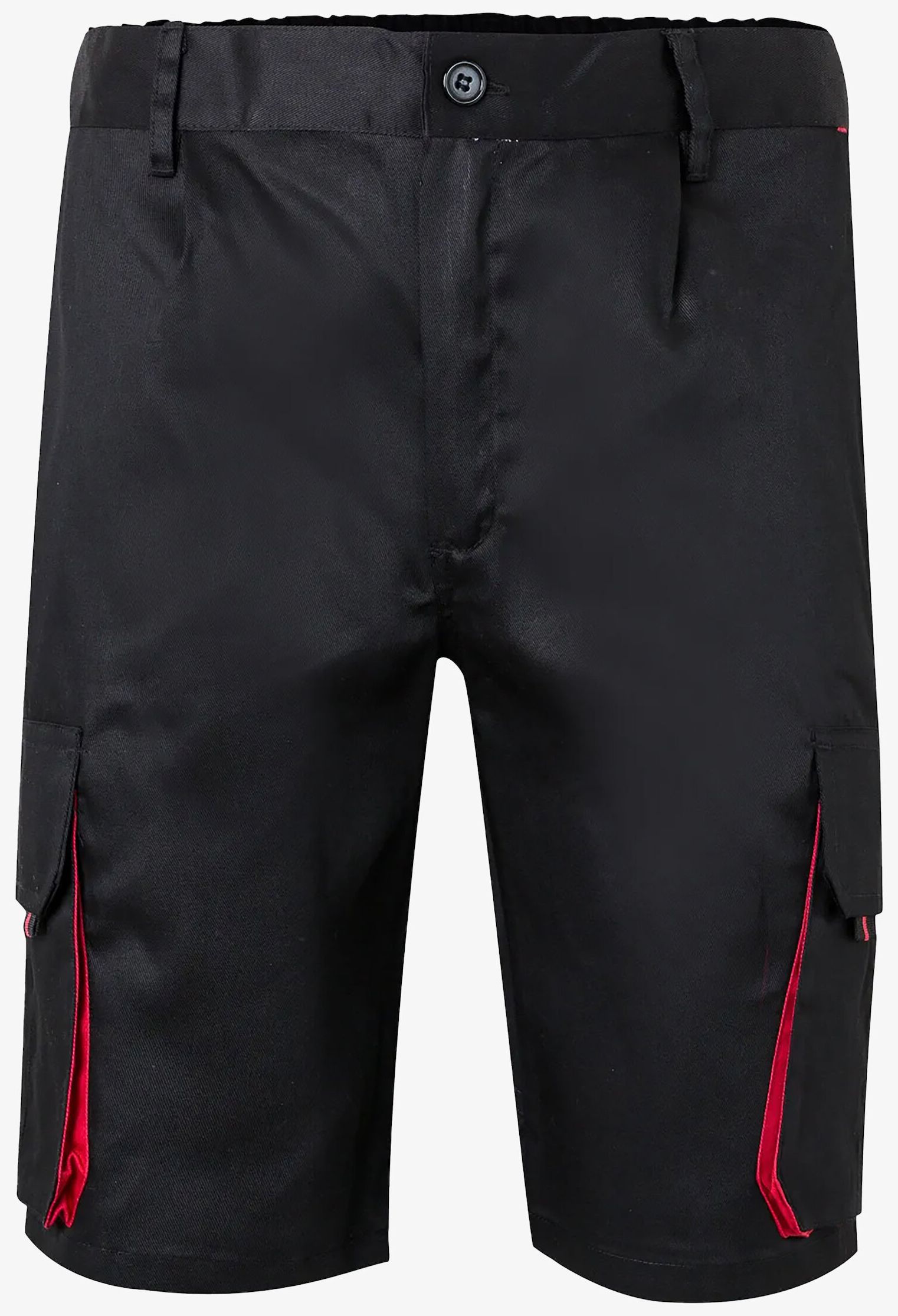 Le bermuda multipoches bicolore dispose d'une fermeture à bouton avec braguette zippée. La taille est élastiquée et le tissu arrière renforcé. Les poches comprennent deux poches françaises, deux poches avec fermeture à rabat et bande auto agrippante, ainsi que deux poches arrières similaires. Les coutures sont doubles pour plus de solidité.