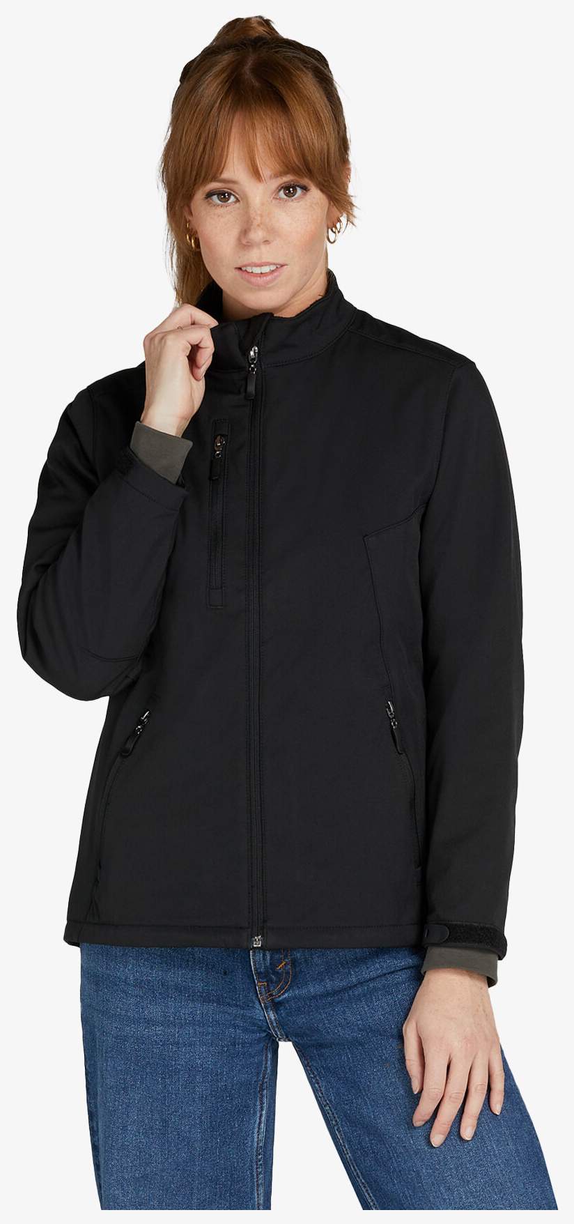La veste softshell à 3 couches présente une coupe féminine avec des coutures adaptées pour un ajustement spécifique. Sa micropolaire intérieure combinée à une membrane hydrostatique assure une protection contre l'humidité tout en restant respirante. Elle comprend plusieurs poches intérieures et extérieures pour le rangement sécurisé des effets personnels et un zip complet avec protège-menton.