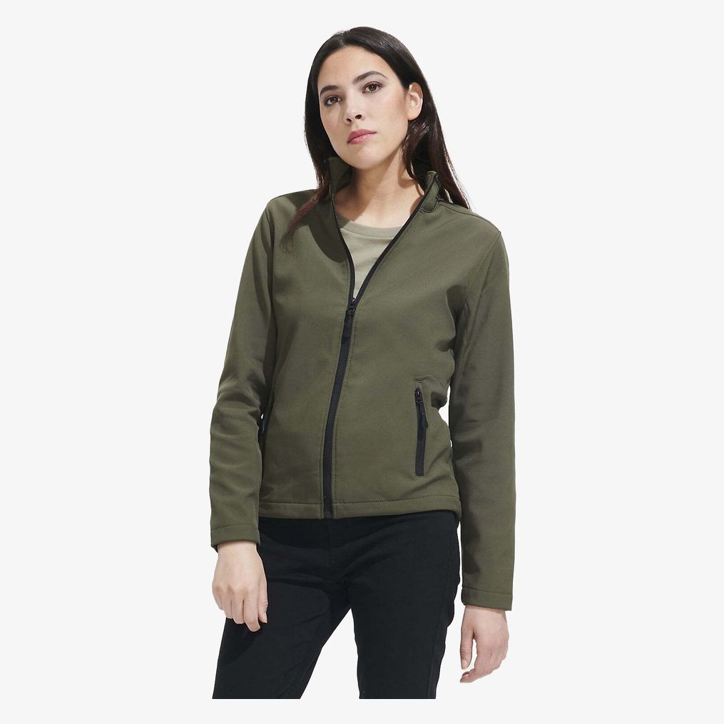 La Race Women Softshell est constituée de 96% polyester et 4% élasthanne avec une construction en deux couches offrant un équilibre entre souplesse et structure. Elle inclut deux poches latérales équipées de fermetures zippées et une fermeture principale Zip SBS.