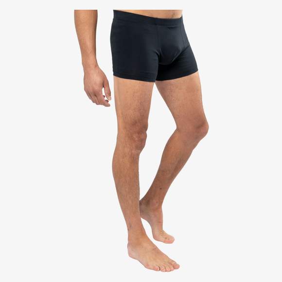 Le Boxer Bio homme présente une coupe confortable avec une ceinture élastiquée de 3 cm et une entrejambe doublée. Les finitions sont réalisées en double aiguille en bas.