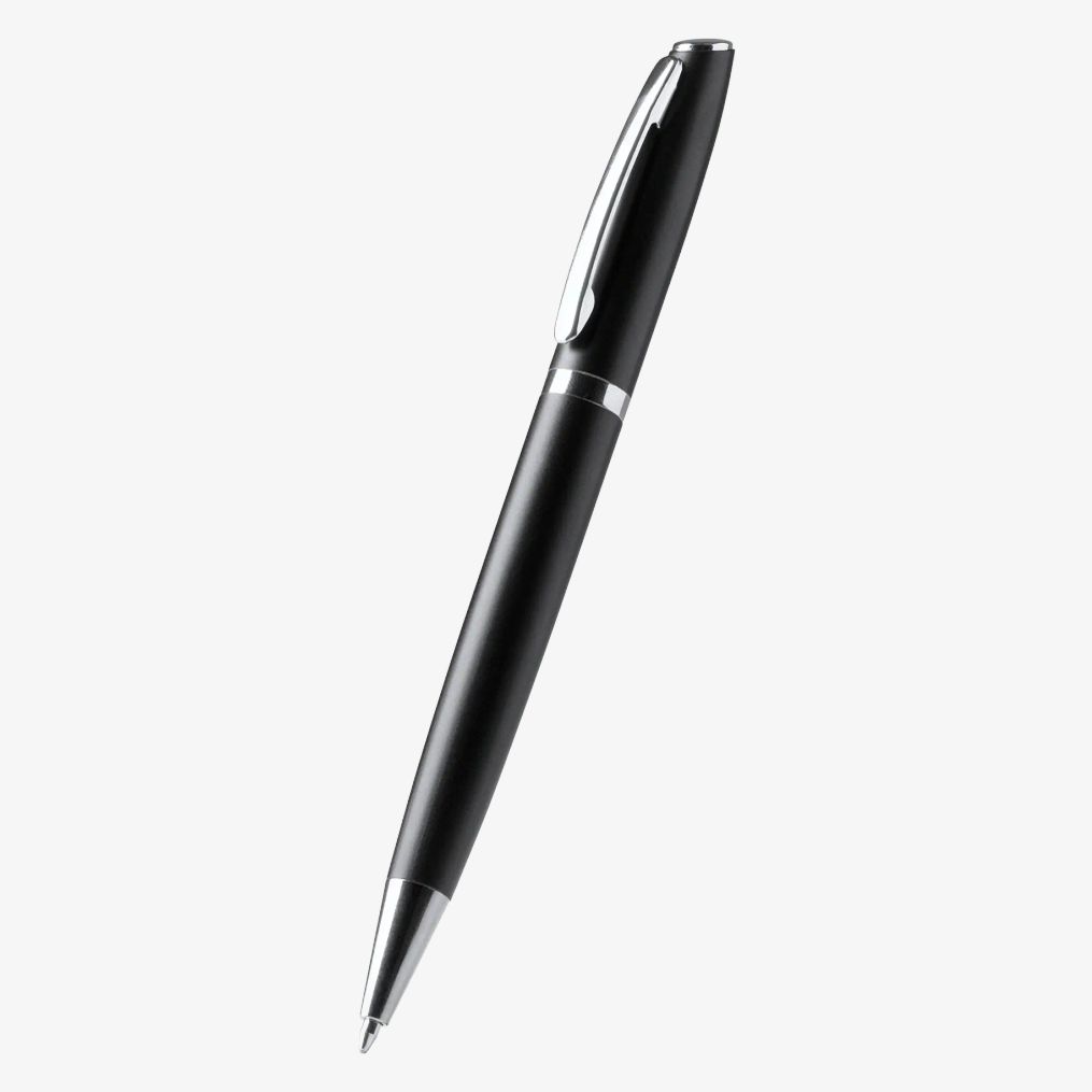 Le stylo bille ALVIK possède un corps en aluminium recyclé avec des détails en métal. Il est équipé d'une recharge jumbo d'encre bleue offrant une écriture fluide.