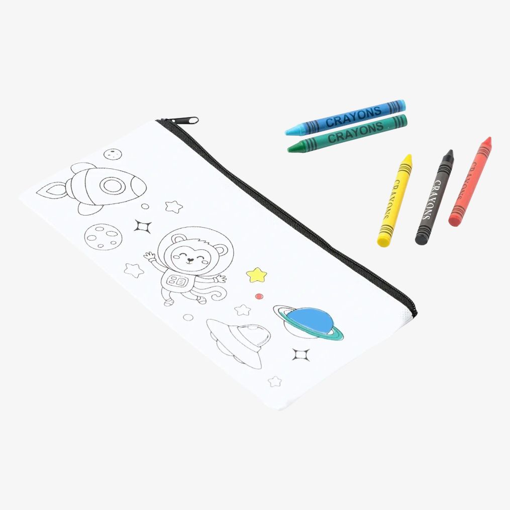 La trousse non-tissé SOLAZ est destinée à contenir des crayons et petits accessoires pour enfants. Elle comprend 5 crayons de couleur assortis pour le coloriage et mesure 22 x 11 cm.