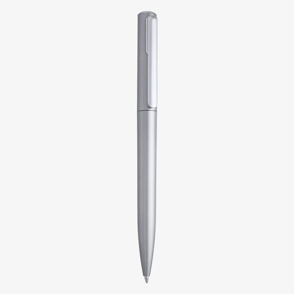Stylo avec mécanisme de rotation en ABS. Finition métallique. Encre bleue