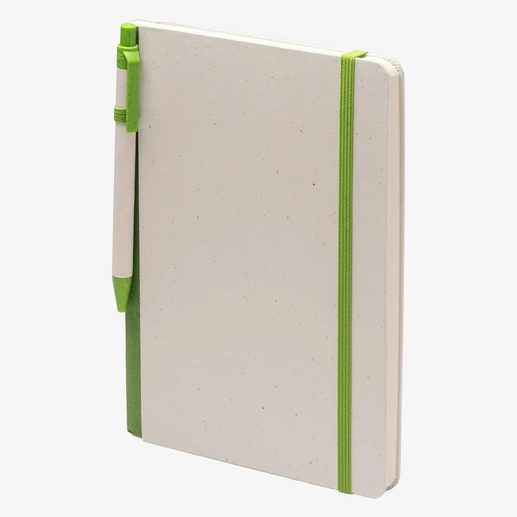 Le carnet bloc notes YORIS est fabriqué à partir de briques lait recyclées. La couverture rigide intègre une bande élastique et un marque-page assortis à un stylo à bouton-poussoir à encre bleue inclus. Il contient 80 feuilles simples offrant un espace suffisant pour notes et dessins.