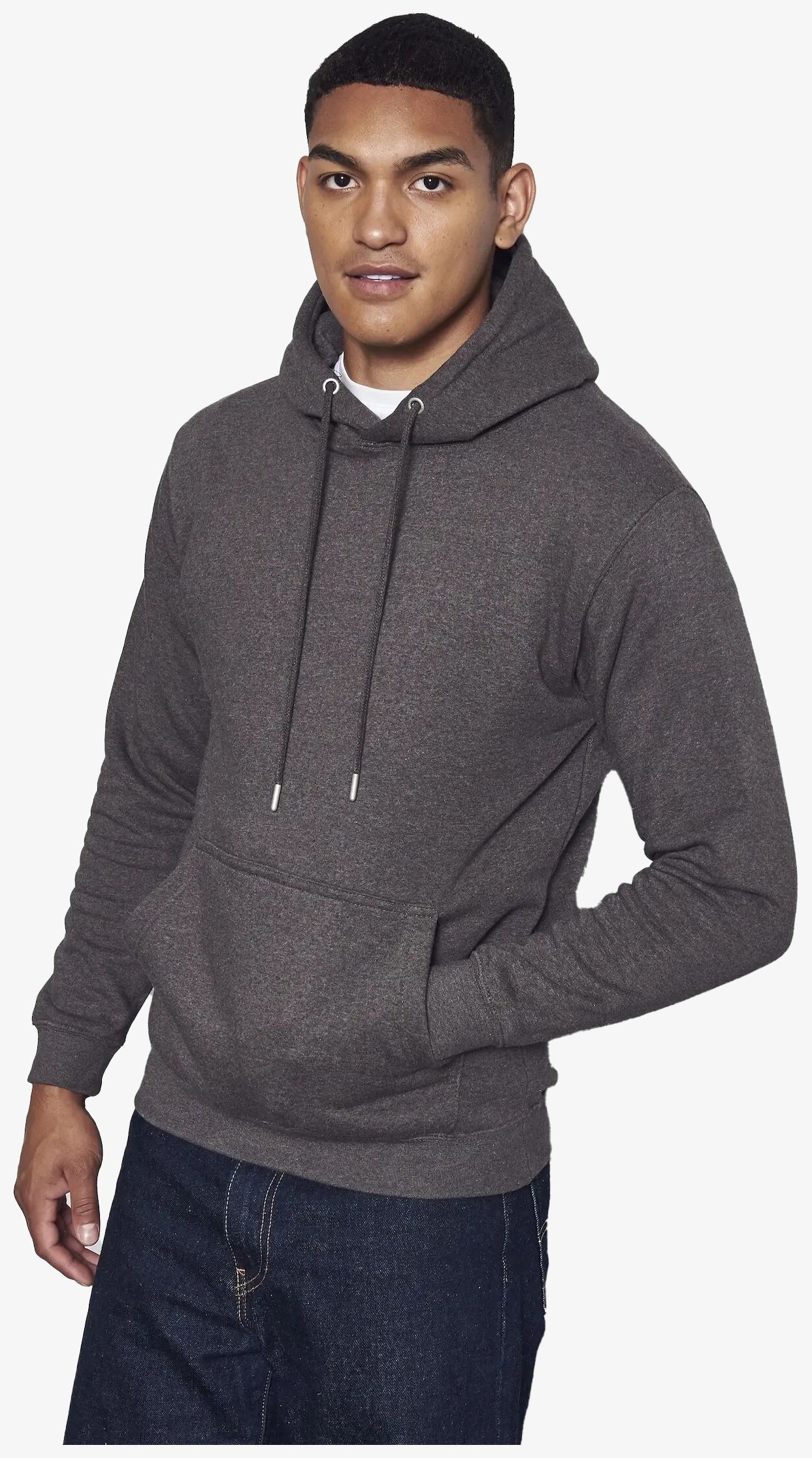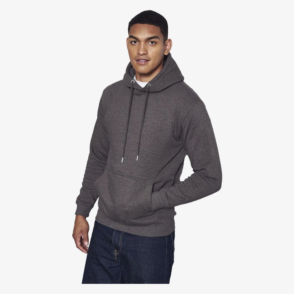 Le sweat à capuche en coton organique présente un intérieur molleton gratté offrant une surface lisse. La capuche est doublée et équipée de cordons unis. Les poches kangourou et les poignets côtelés complètent sa conception.