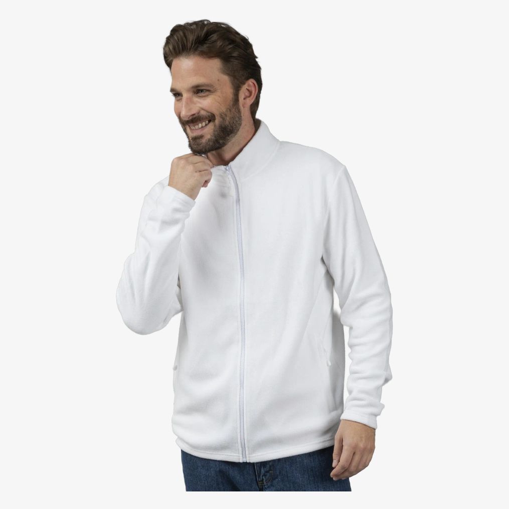 La veste polaire homme zippée comprend un grand zip principal et deux poches latérales zippées avec contrastes. La composition est une micropolaire antiboulochage 100% polyester.
